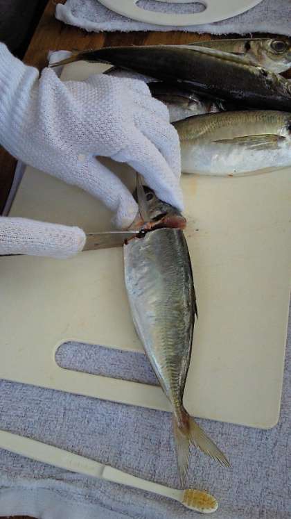 まずはアジをさばきます。