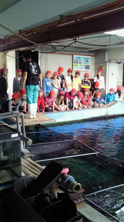 大きな水槽での餌やりの様子や、
