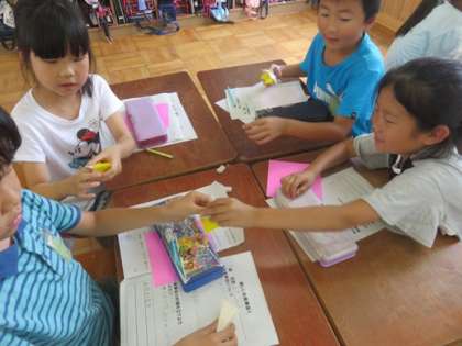 お食事会に向けて準備を進めています。どんなことをすれば一緒に楽しめるのか考えています。すごろく,おりがみ,クイズなど自分たちで作成中です。