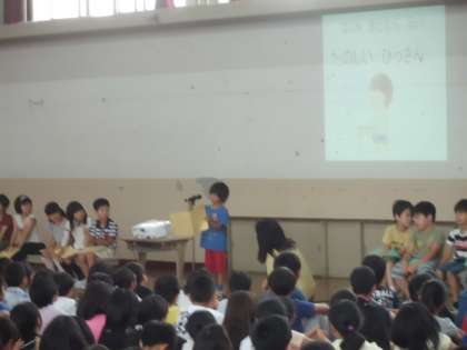 6月26日(月)に吉祥院タイムがありました。今回は2年生の発表。「学習でがんばっていること」をテーマに,「ミニトマトを育てていること」や「筆算のこと」,「図工の作品作りのこと」などを話してくれました。一人一人の発表に耳を傾け,全体の感想交流では,以前よりも多くの子が手を挙げることができました。教室に戻ってから書いた感想カードには,自分の経験と結びつけ,2年生にあたたかい応援メッセージを送る子も見られました。