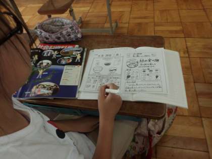 社会科「わたしたちの生活と食料生産」では,ふだんどのようなものを食べているのかを給食カレンダーより調べました。「農産物」「水産物」「畜産物」に分けて,整理しながら見つけ出すことができました。