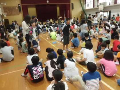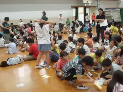 6月30日(金)に全校たてわりあそびがありました。全たてわりチームが体育館に集まって,グループごとにジェスチャーゲームをしました。どのグループも高学年が引っ張っていき,楽しい活動にすることができました。どのグループも仲良くなれたようでした。