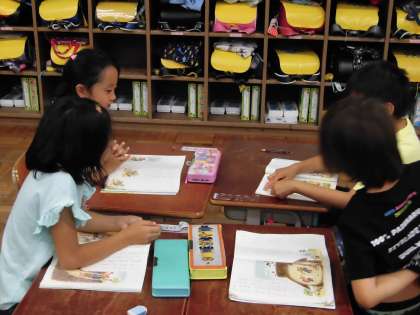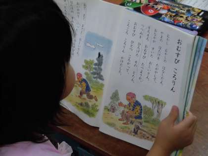 国語で「おむすびころりん」を学習しています。子ども達は,リズムがいいこのお話が好きで,おじいさんやねずみに変身して音読を楽しんでいます。今日は,工夫して読みたい言葉をみんなで考え,その読み方に気をつけながら,班ごとに音読の練習をしました。おじいさんになったり,おむすびがころがる音を工夫して読んだりと,それぞれの班で楽しく読む姿が見られました。