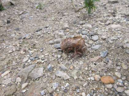 アサガオの観察に行くと,おまけにセミの抜け殻やバッタも見つけたりして…。