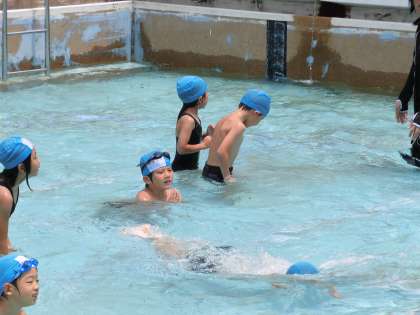 「いろいろな水あそびを楽しむ(ねらい1)」「もぐったり水中で息をはいたりする水あそび(ねらい2)」の活動をしてきた子ども達。いよいよ「浮いたり進んだりする水あそび(ねらい3)」にむけての活動をしました。自分で選んだコースに分かれ,今までの活動を振り返り,顔をつけたり,いろいろな浮きかたで浮いたり,手足を伸ばし,前に進んだりしました。一人ひとりがめあてをもって,楽しく活動できました。
