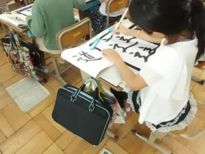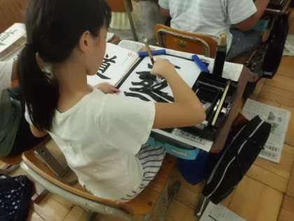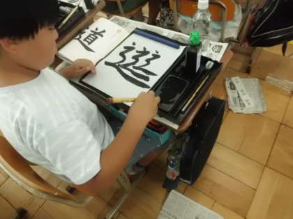 書写の学習では「道」の字を使って,中と外の部分の組み立てを学習しました。まずは,「にょう」の部分と「首」の部分に分けて,書く練習した子どもたち。最後は2つを合わせて,字形を整えて書くことができました。