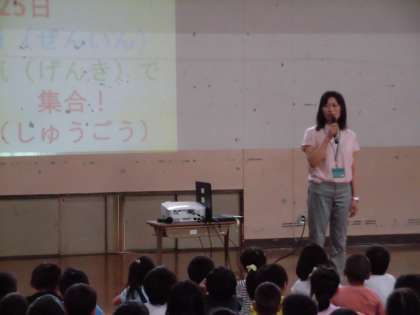 夏休み前,最後の朝会があり,校長先生から4月から今日までの目標について,お話がありました。お話を聞き,「背中をピンとまっすぐに座る」「話す時は相手を見て」「聞く時は話す人を見て」など,自分たちが学校での活動でどうだったかを振り返りました。1年生も4月に比べできてきて,今日のお話を聞く時も,最後まで頑張る姿が見られました。「夏休み,安全に気をつけて過ごし,8月25日,全員が元気に学校に登校しましょう。」という言葉を,みんな真剣に聞き,明日からの小学校初めての夏休みに思いをはせていました。