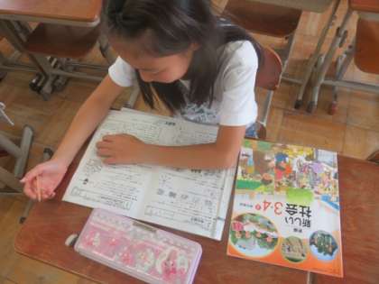 夏休みは始まり,サマースクールも始まりました。子ども達は夏休みの宿題等自分の課題を持ってきて取り組んでいます。集中して取り組んでいるので,1時間があっという間に終わります。