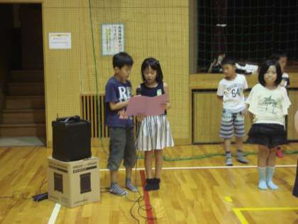 まず,踊ったり,劇をしたり,発表を見てもらいました。
