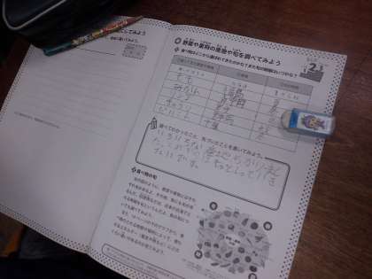 総合的な学習の時間で取り組んでいるエコライフチャレンジ。ふだん食べている食品がどこから来ているのか,また,それらの旬はいつかなどを調べていきました。