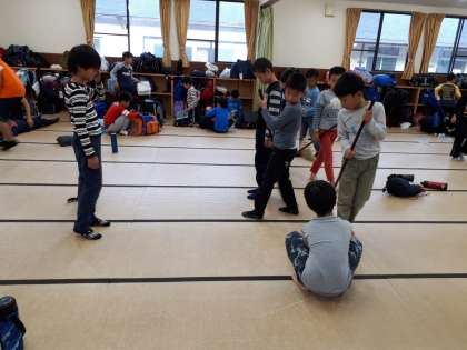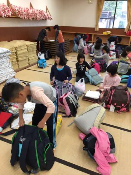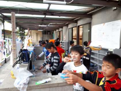 90畳の男子もバンガローの女子もみんな元気です。シーツや布団を進んで協力し,畳んだり整理したりする姿が素晴らしいです。男子は,たった15分間で全員が身支度できました❗