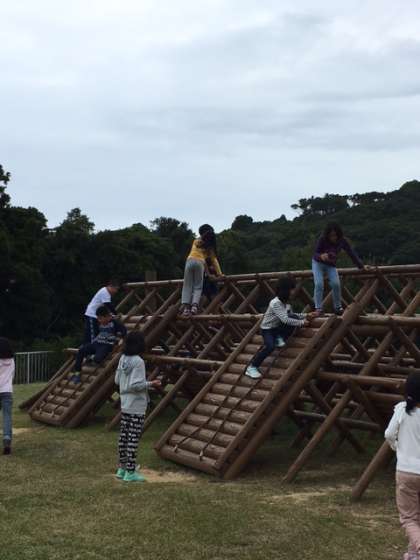 少し雨がパラパラと降ってきましたが,昼食後,野外炊事までの間,芝生広場で遊びました。ふえおに・鬼ごっこ・アスレチックなど,お腹がいっぱいでもみんな元気に遊んでいました。