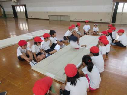 次回からは,マットに傾斜をつけるなど,練習の場を工夫して取り組んでいきます。