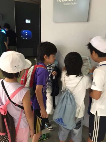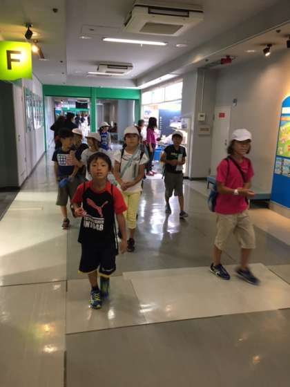 個々に見たいものが違うようで,どれから見に行くか地図を見ながらグループのみんなと相談しています。「こっちやでー」「みんなそろってるー?」と声をかけあいながら元気に活動できています。