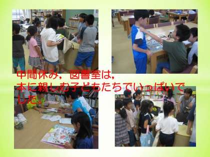 「9月は読書月間です。たくさん本を読みましょう。」と,月曜日の朝会で,図書委員会の子どもたちが呼びかけてくれました。火曜日は,図書室来室者数が93名,貸し出し冊数が200冊と,普段の数倍に増えました。雨の一日で,外で遊べなかったことも関係しているかもしれませんが。