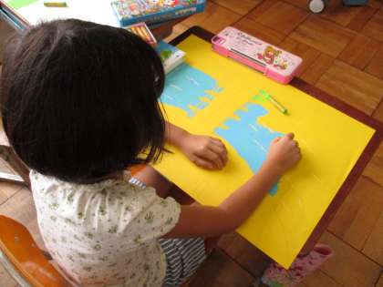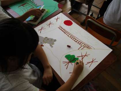 お話の世界に浸り,自分のお気に入りの場面を絵に表しています。