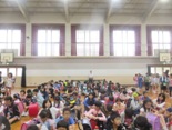 土曜参観の後,引渡し訓練を行いました。1時間目の授業で引渡しの確認を行いました。3時間目終了後,放送が入り,子ども達は下校の準備をして体育館に集合しました。そして4時間に,引渡し訓練を行いました。