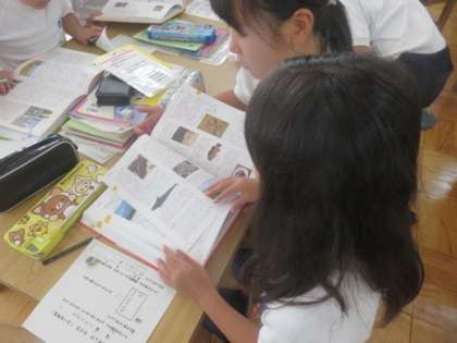 図書館で本を探しやすくするための工夫を見付けた子ども達。今回は図鑑や百科事典などの使い方です。調べたいことについて目次や索引を使って調べる方法について学びました。。