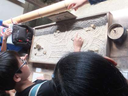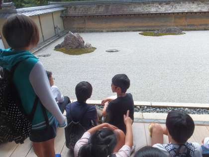 質問に答えていただいた後は,実際に石庭の見学をしました。見る場所を変えながら石の数を数えたり,屏風を見たり,落ち着いた雰囲気を味わうことができました。