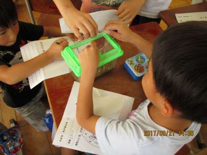とても楽しそうに虫とりをしたり,「かわいい」と眺めたりしていました。