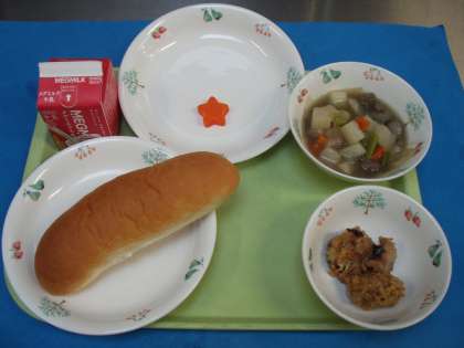 ポトフは給食室で時間をかけてコトコト煮込みました。野菜の旨味が出て美味しく出来ました。