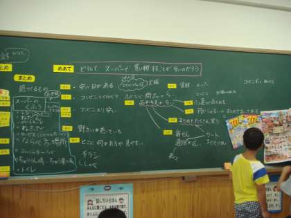 スーパーで買い物をする人が多い理由についてみんなで考えました。