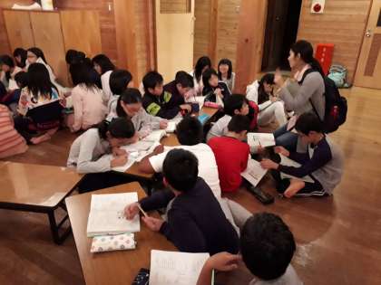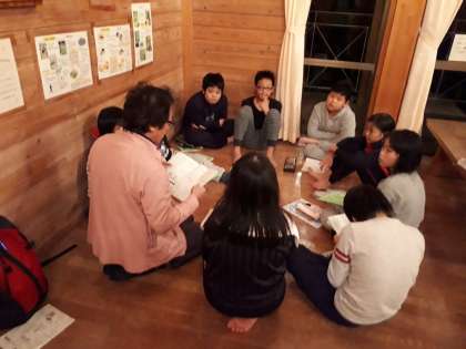 気持ち良かった!いい湯だった!という感想が聞かれた入浴も終わり,これから1日の振り返りです。みんな元気に1日目の活動を終えられそうです。