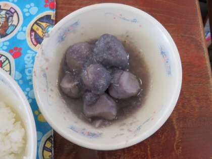 今年の月見は,10月4日です。里いもが,この時期にとれるので,いも名月とも言われています。給食には,月見にちなんで里いもの煮つけを食べます。