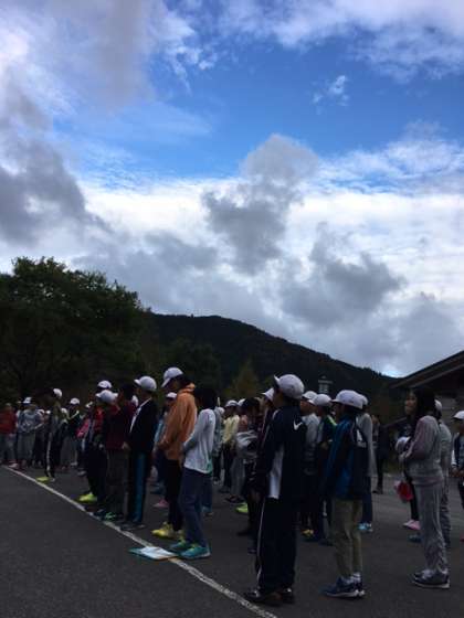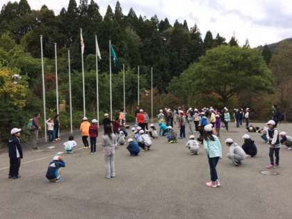 肌寒いですが、晴れ間が少し見えるお天気です。朝からテキパキと顔を洗い,着替えを済ませ,玄関前広場で朝の集いを行いました。レクレーション係の人がミニゲーム(落ちた落ちた)をして,楽しませてくれました。みんなを元気そうです。