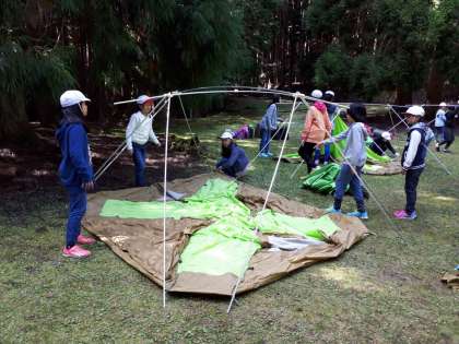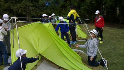 どのグループもしっかり協力できているようで,徐々にテントが形となってきました。