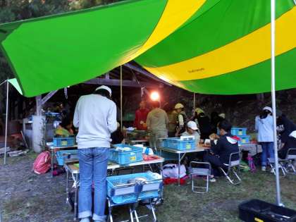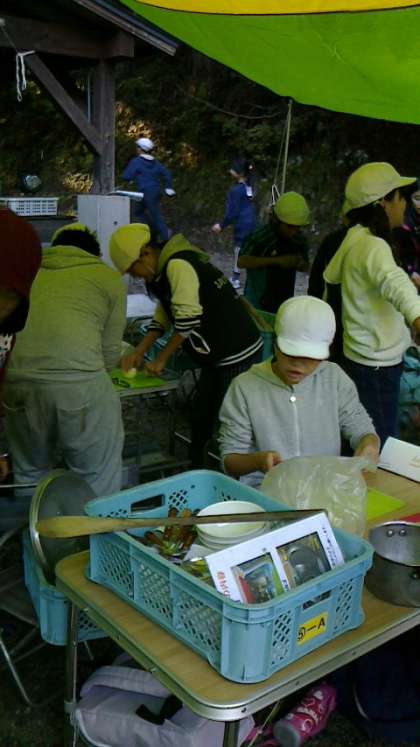 2日目の夕食もカレーライスです。昨日の1回目でちょっと失敗した班は,今度こそ美味しく作ろうと張りきっています。成功した班は,さらに美味しいカレーライスづくりに挑んでいます!どの班も互いに声を掛け合ながら助け合ってがんばっています。