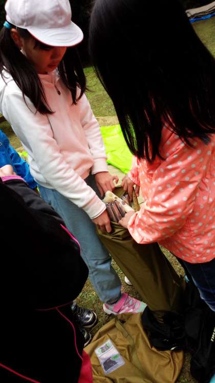 うまく空気を抜かないと,袋に入りません。声を掛け合って協力することで袋に入れることができました。