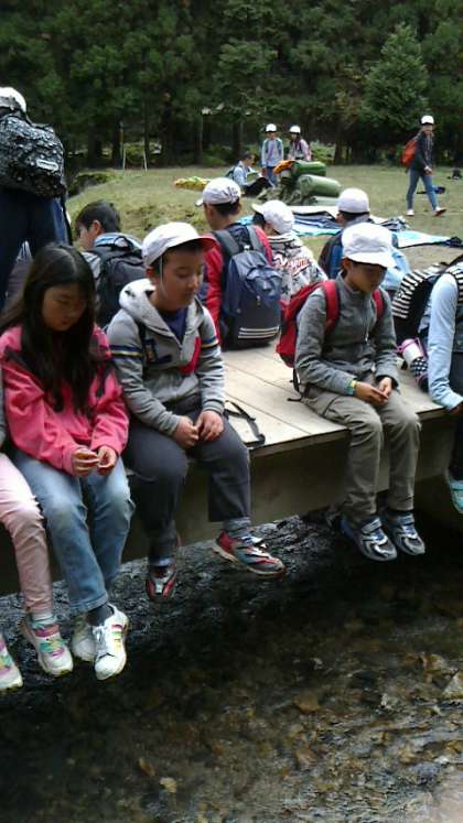 テントの片付けも終わり,ほっと一息。小川のせせらぎも自然の大切さを感じさせてくれます。