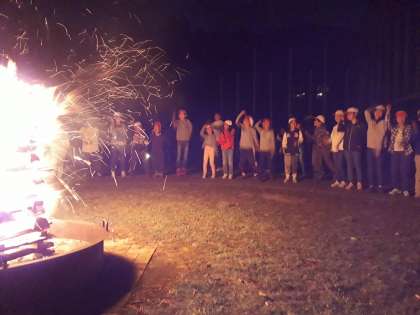 火の神から三人の望む聖火をもらい,いよいよファイヤー点火。燃える火を囲みながら,歌ったりゲームしたり身体を動かしたりしました。レク係の上手な進行のおかげで一番の思い出が出来たのではないでしょうか。