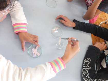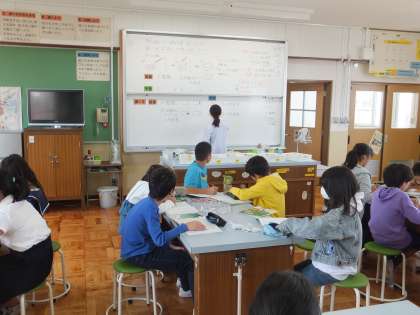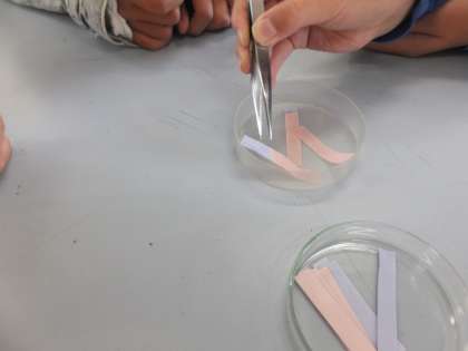 理科の学習で取り組んでいる「水よう液の性質」で塩酸と水酸化ナトリウムの性質をリトマス試験紙を使って調べました。危険な水溶液なので,取り扱いに十分注意し,実験を進めていきました。