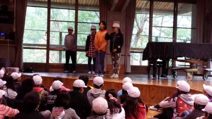 山の家の所員さんにキンモクセイの花を見せていただきました。花言葉は謙虚。小さい花で目立たないけどいい匂いがする控えめな花。スリッパをそろえたりゴミを拾ってくれたり一生懸命がんばっている人がいた。学校でもがんばっているとどこかで誰かがいろんなところで見てくれているはずだからがんばってほしいとお言葉をもらいました。最後に代表がお世話になった所員の方にお礼を伝えました。外は大雨ですが,これからバスに乗って学校に向かいます。