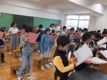 6年生の音楽の学習で,リコーダーの演奏や合唱に取り組んでいます。リコーダーでは,和音に合うように考えて演奏をしました。それぞれが考えた演奏を合わせると,きれいなメロディーになりました。