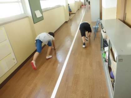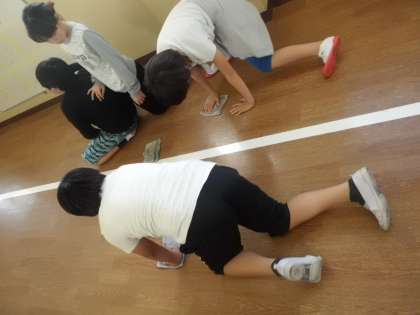 床掃除の子どもたちは,ほうき掃除の後に床ぞうきんに取り組みます。ふき残しがないように,協力して丁寧に取り組んでいます。ご苦労さま!