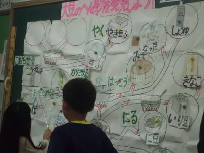 普段食べている豆腐や納豆,みそなど,様々なものが大豆からできていることを知り,とても驚いていました。