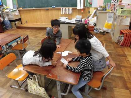 今日の道徳の学習では,「できるかなゲーム」という活動を行いました。班でカードを引き,そこに書かれていることをやってみるというものです。カードには,「トイレのスリッパをそろえよう」「傘立ての傘を整理しよう」「机の中を整理しよう」などが書かれています。班でカードを引くと,「靴箱の靴をそろえよう」というカード。「昇降口に行こう!」と大急ぎで教室から出て行きました。