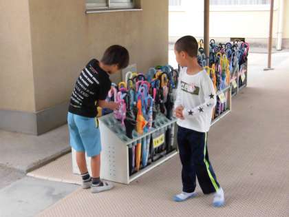 昇降口や渡り廊下,トイレでは,子ども達が一生懸命靴やスリッパを揃えたり,傘を整理したりする姿が見られました。「やった。できた。次のカードを引きに行こう。」と教室に急ぐ子ども達の顔はにこにこしていました。活動が終わった時,みんなにやってみて気付いたことを聞きました。「みんなでやったら,たいへんやけどおもしろかった。」「すっきりした。」「きちんと片づけていないと,あとの人が困る。」などなど。「自分でできることを進んで」「あとの人のことを考えて」という大切なことを,感じ取った学習でした。