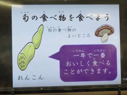 「給食室からこんにちは」で,旬の食べ物を食べようのお話しがありました。