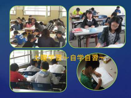 自分で学習しようと決めた課題を持ち,進んで学習する子どもたちです。プリント学習に取り組む子どももいます。保護者ボランティアの皆さんが見守ってくださいます。教員も関わります。