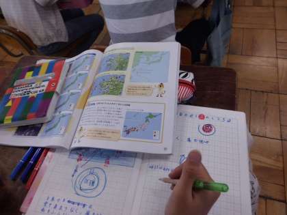 理科「天気と情報(2) 台風と天気の変化」では,台風が来た時の天気の変化について考えました。天気図とアメダスからどのような変化が起こるのか,ノートにまとめていきました。