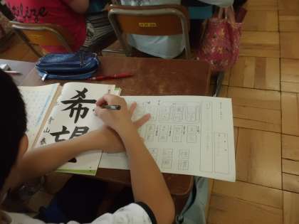 書写では「筆順」と「字形」に気をつけて,硬筆で書く練習をしました。筆順を確認し,意識することで,字形が整う子がたくさんいました。