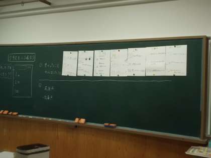 前期最終日,今までのクラスがどうだったか,ふり返りました。よかったところと直したいところを出すことで,後期の目標にしていければと思っています。
