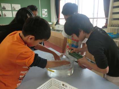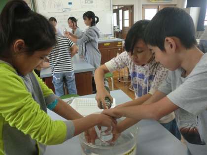 学習した子どもたち。今日の授業では,実際に