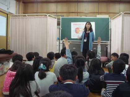 視力検査に関連し,目の愛護デーのお話,「利き目」の話を聞きました。