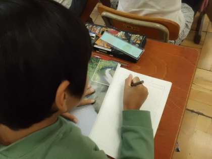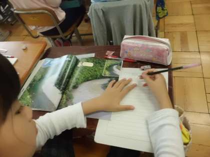 理科「流れる水のはたらき」では,2つの川の写真を見比べて,気づいたことを書き出しました。川の色や水嵩など,たくさんのことに気づくことができていました。