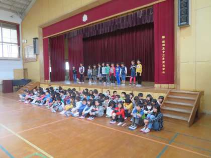 初めて体育館で学習発表会の練習をしました。台詞をどのように話すと聞いている人に伝わるのかを考えました。声の大きさ,速さ,動きを付けるなど相手に伝わる方法を考えながら練習を開始しました。